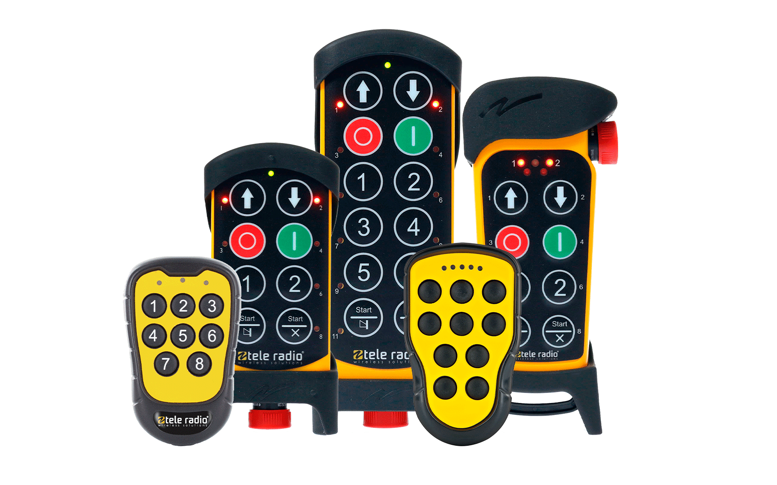 Distributed for the US by Tele Radio America. Transmitters with up to 14 keys, rechargeable batteries, easy set up receivers, and optional E-STOP buttons.